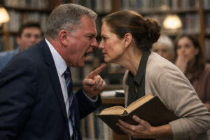 «¡No me digas qué puedo o no leer! ¡Eres solo la bibliotecaria!» —gritó el empresario—. Pero lo que ella respondió dejó la biblioteca completamente en silencio… 😱😱😱