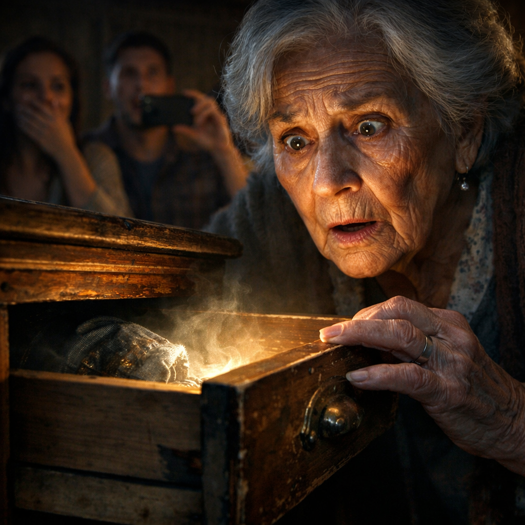La caja era de madera oscura, sin adornos, sin cerradura visible. Demasiado simple. Demasiado limpia. No tenía polvo. Eso fue lo primero que notó el nieto que grababa con el teléfono. Todo en esa casa acumulaba años, pero esa caja… parecía intocable por el tiempo, como si el tiempo mismo la evitara.