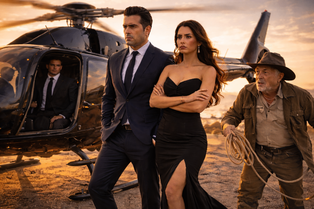 Ese es el verdadero clímax de la historia. No el helicóptero, no los disparos, no el puente colgando sobre el vacío. El verdadero clímax fue moral. Ocurrió cuando la apariencia perdió su dominio y la verdad habló con botas gastadas, sombrero viejo y voz firme. Ocurrió cuando el hombre más subestimado del lugar resultó ser el único con suficiente valor para enfrentar la mentira antes de que despegara.