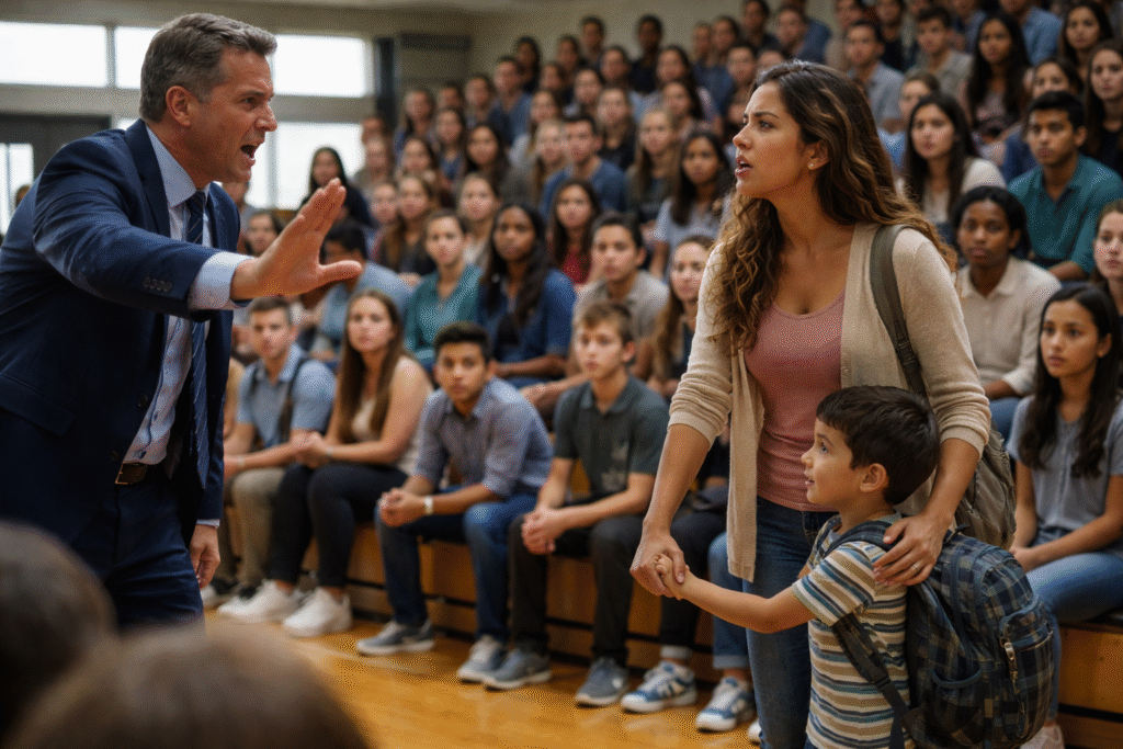 The school officer took a step back. The teachers, for the first time, began speaking among themselves. The auditorium wasn’t on the principal’s side; it was on the side of logic. Sarah saw one last opening and took it: she asked for a symbolic vote for Lucas to enter classes that same day. “It’s not binding,” she said, “but it shows who wants to be complicit.”