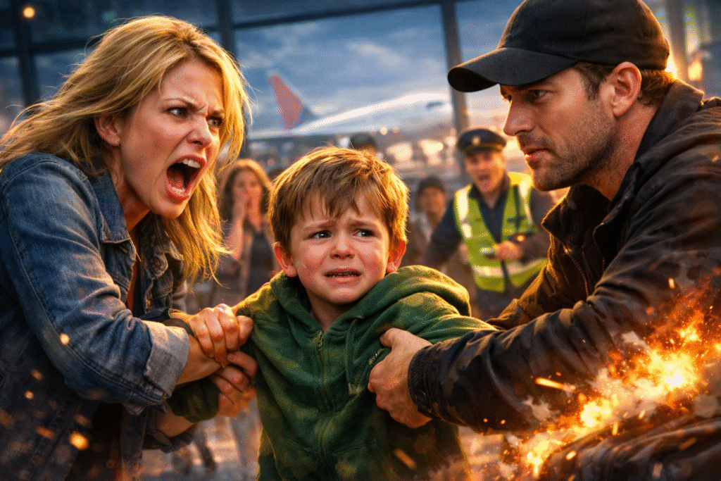 Las palabras hicieron retroceder a la gente como si hubieran abierto una puerta a otra historia. Un padre biológico. Una madre furiosa. Un tribunal. Una custodia de emergencia. Ya no parecía un secuestro improvisado en un aeropuerto, sino el final violento de un conflicto oculto. Karen abrió la boca para desmentirlo, pero el agente le pidió silencio. El control del relato empezaba a escapársele.