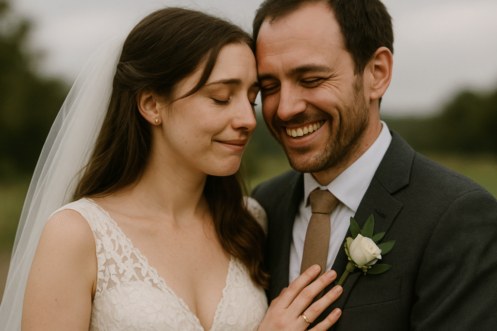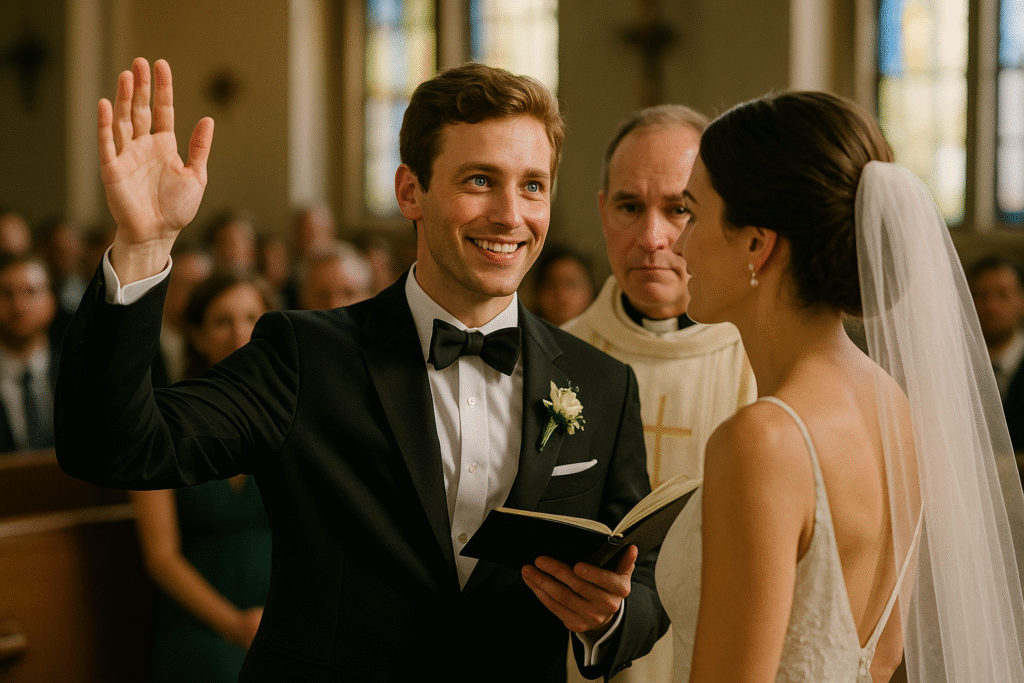 Cuando el sacerdote pidió los votos, todos asumieron que ella hablaría por ambos, pero él levantó la mano, pidió permiso