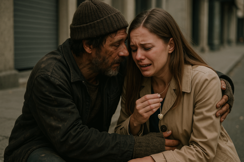 Un hombre sin hogar salvó a una mujer, y cuando vio su collar, comprendió que la conocía desde niño. La