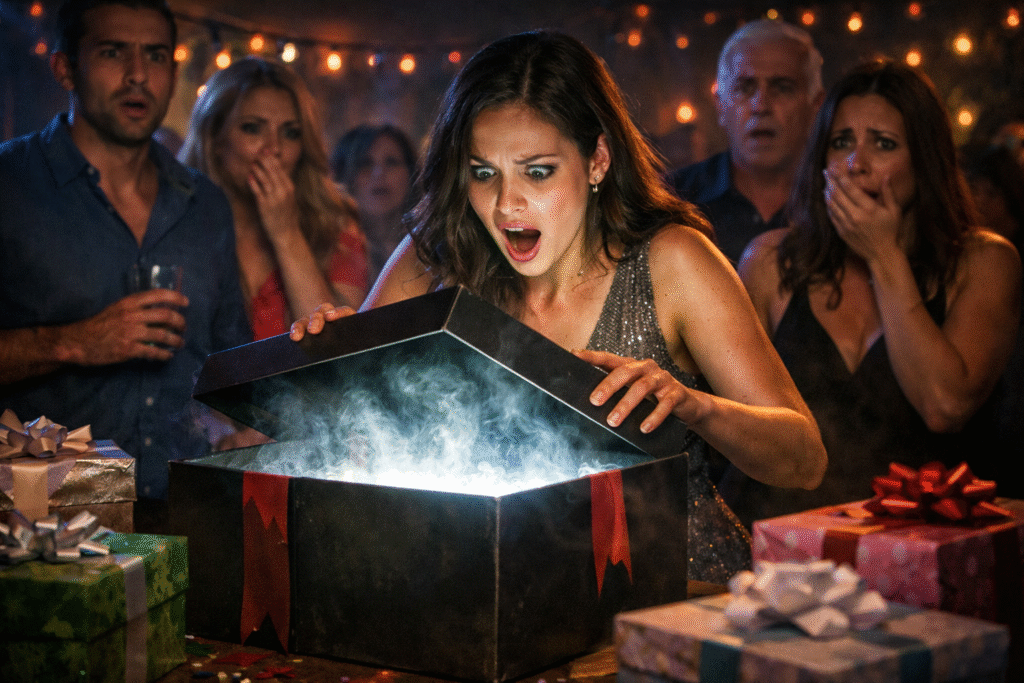El silencio cayó como un golpe seco en la sala. La música seguía sonando, pero nadie la escuchaba ya. Valeria se quedó inmóvil, mirando el interior de la caja como si su mente se negara a procesar lo que tenía enfrente. Sus manos temblaban ligeramente, pero no apartaba la mirada.