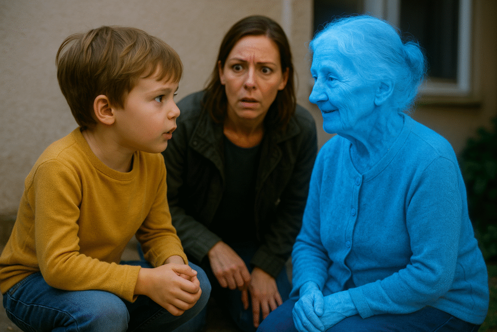 Años después, cuando Lucas creció, recordaba a la señora azul no con miedo, sino con ternura. Decía que ella le enseñó que los que se van nunca lo hacen del todo. Que la luz tiene formas infinitas de regresar. Y que a veces, los niños ven lo que los adultos olvidan mirar.