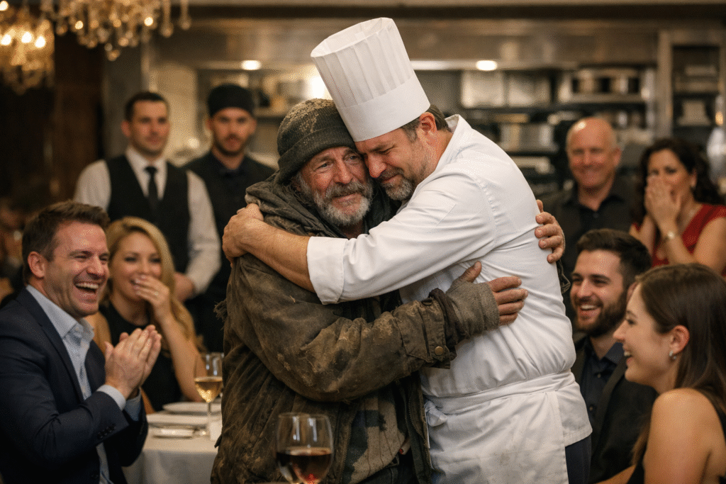“Aprendiste a controlar la sal”, dijo con una media sonrisa. El chef soltó una risa ahogada, casi infantil. El salón entero quedó descolocado ante esa intimidad repentina. De pronto dejaron de ver a un vagabundo y a un chef famoso; veían a un maestro y a su alumno, atravesados por años, por golpes, por lealtades que ni la ruina había logrado borrar del todo.
