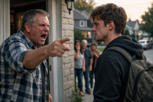 «¡No vuelvas a entrar a esta casa! ¡Ya no eres mi hijo!» —gritó el padre—. Pero lo que el joven respondió dejó a toda la calle suburbana completamente en silencio… 😱😱😱